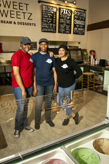 Our sweet-tooth satisfying, family-owned business is operated by Lodene Turner along with her two daughters. Our Black-owned dessert store serves a variety of Blue Bell Ice Cream flavors and homemade baked goods and desserts such as chocolate-covered pretzels, cherry pies, and peach cobblers. In addition to our sweet temptations, which you can buy in-store or order online, Sweet Sweetz is committed to a bigger mission that supports the local community by providing a positive gathering space for youth and families.